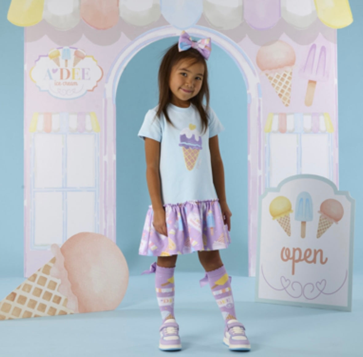 Jersey dress for with ice contrast ice cream frill